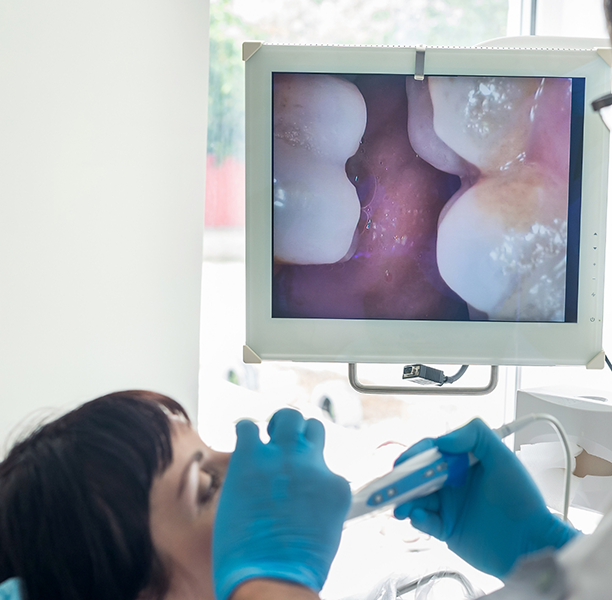 Our state-of-the-art intraoral camera is one of the best ways we can give our patients a clearer, more interactive understanding of their oral health. This small, handheld camera captures high-resolution images of hard-to-see areas, allowing us to identify key concerns such as cracks in teeth, decay, or gum issues with exceptional accuracy. The real-time images are displayed on a chairside monitor, helping you to see exactly what Dr. Lamberti sees!